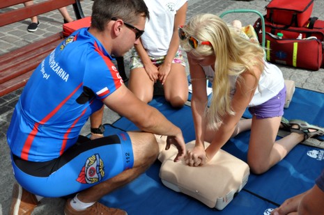 W miniony czwartek rowerzystów powitał na Rynku wiceprezydent Przemyslaw Ślusarski. Strażacy, po krótkim odpoczynku, zorganizowali pokaz z zakresu pierwszej pomocy przedmedycznej przy użyciu manekinów. Akcja cieszyła się dużym zainteresowaniem głównie najmłodszych mieszkańców Grudziądza. Podczas pokazu przeprowadzono zbiórkę pieniędzy na rzecz Klaudii. Studentów SGSP wspierali na miejscu funkcjonariusze grudziądzkiej Jednostki PSP, którzy zapewnili sprzęt i wsparcie logistyczne. Ponadto do grupy zmierzającej na Hel dołączyło dwóch rowerzystów-strażaków z Grudziądza.