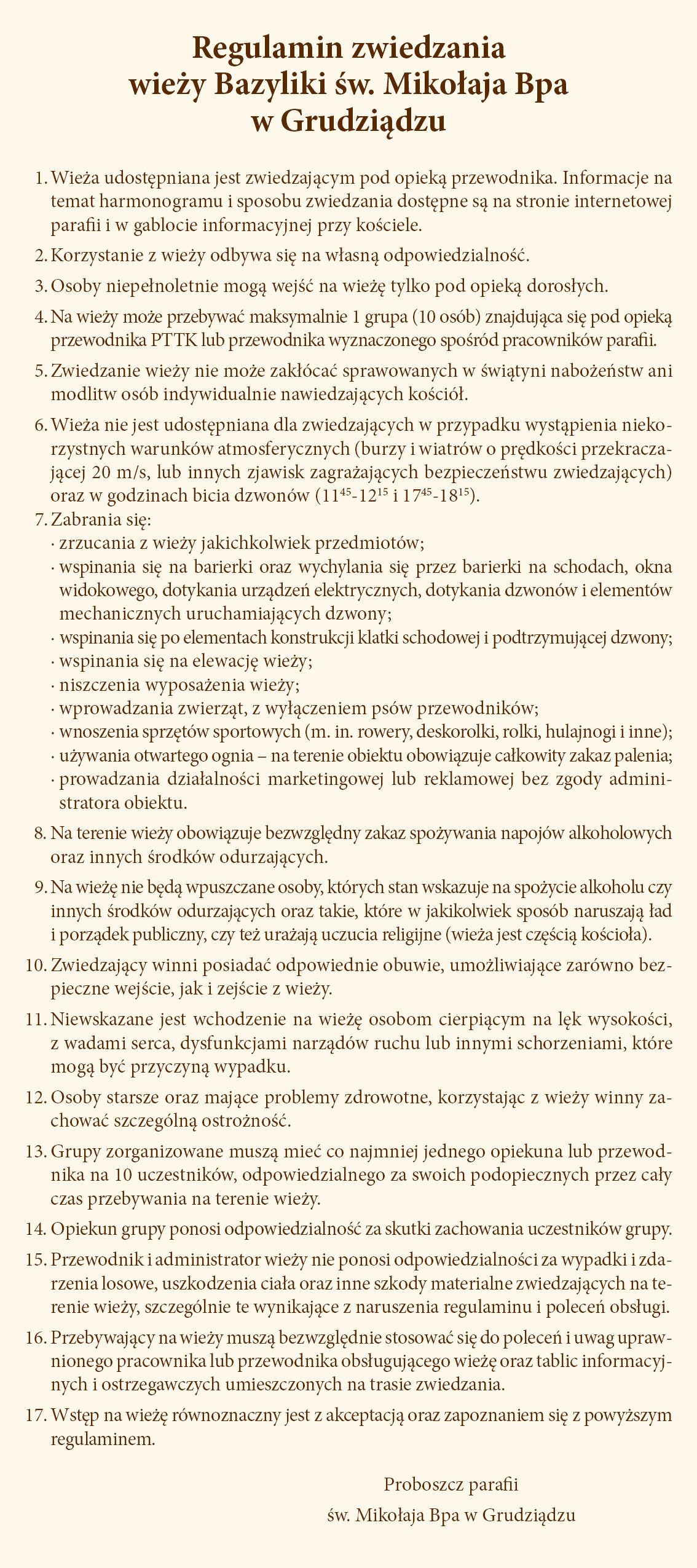 Regulamin zwiedzania wieży dostępny jest tutaj.