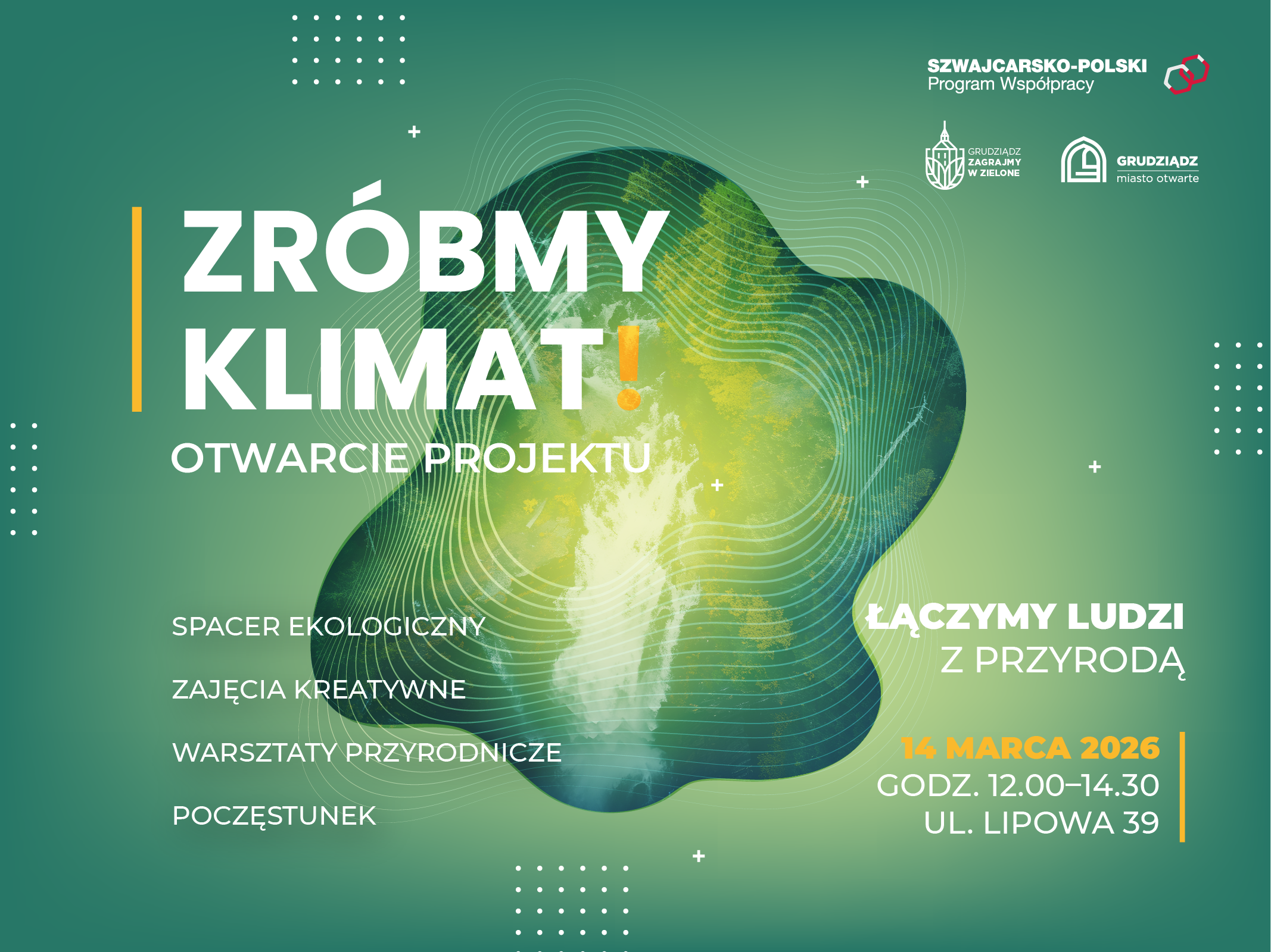 14 marca, o godz. 12.00 przy Parku Podworskim Tarpno przy ul. Lipowej 39, odbędzie się wydarzenie otwierające projekt „Zróbmy Klimat!” finansowany z Polsko-Szwajcarskiego Programu Rozwoju Miast. Zapraszamy do udziału wszystkich zainteresowanych mieszkańców.